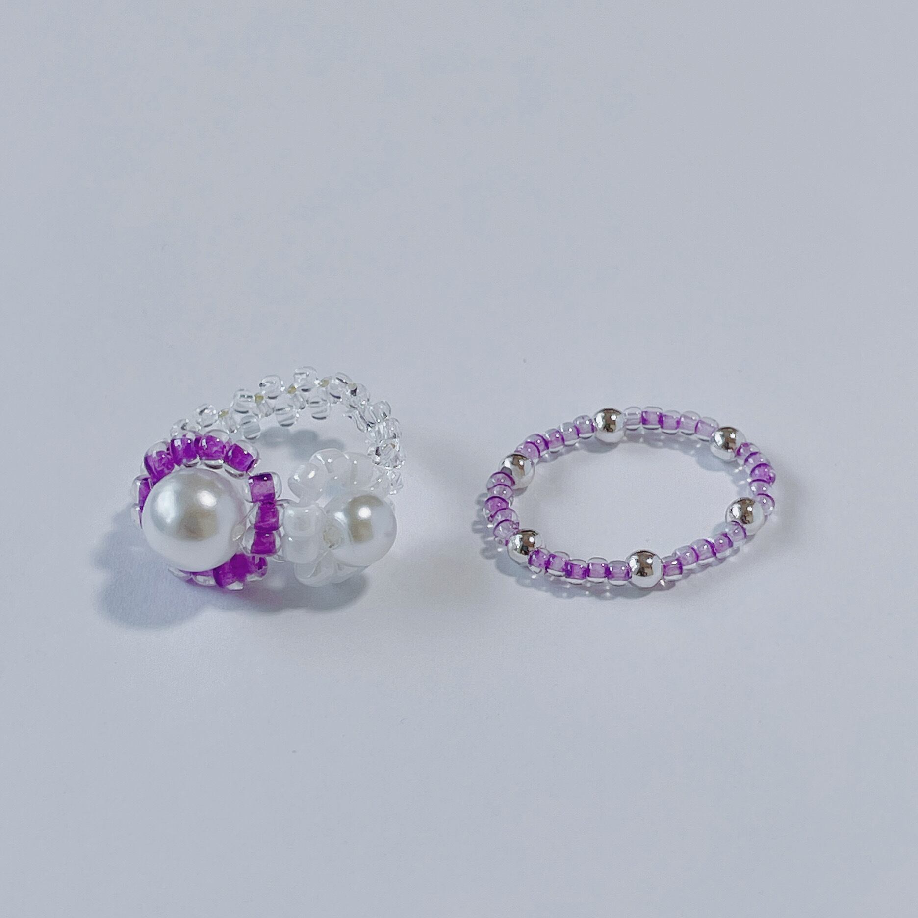 大きさが違う2つのパールフラワーが連なったデザインのビーズリングセットです♡