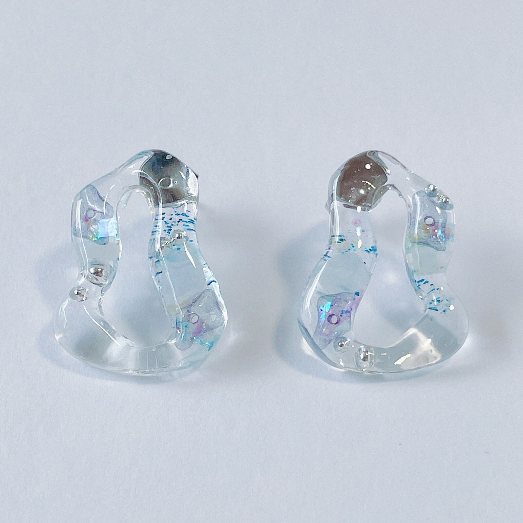 クリアなうねうねの中にキラキラと透明感のあるパーツを閉じ込めたピアスです♪