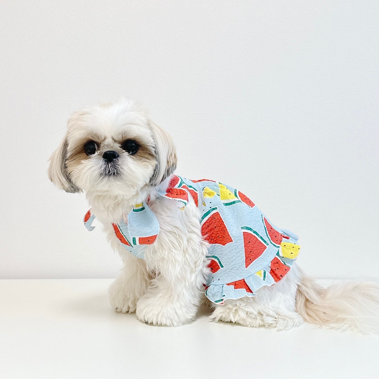 【受注販売】ショルダーリボンワンピース《すいかブルー》
